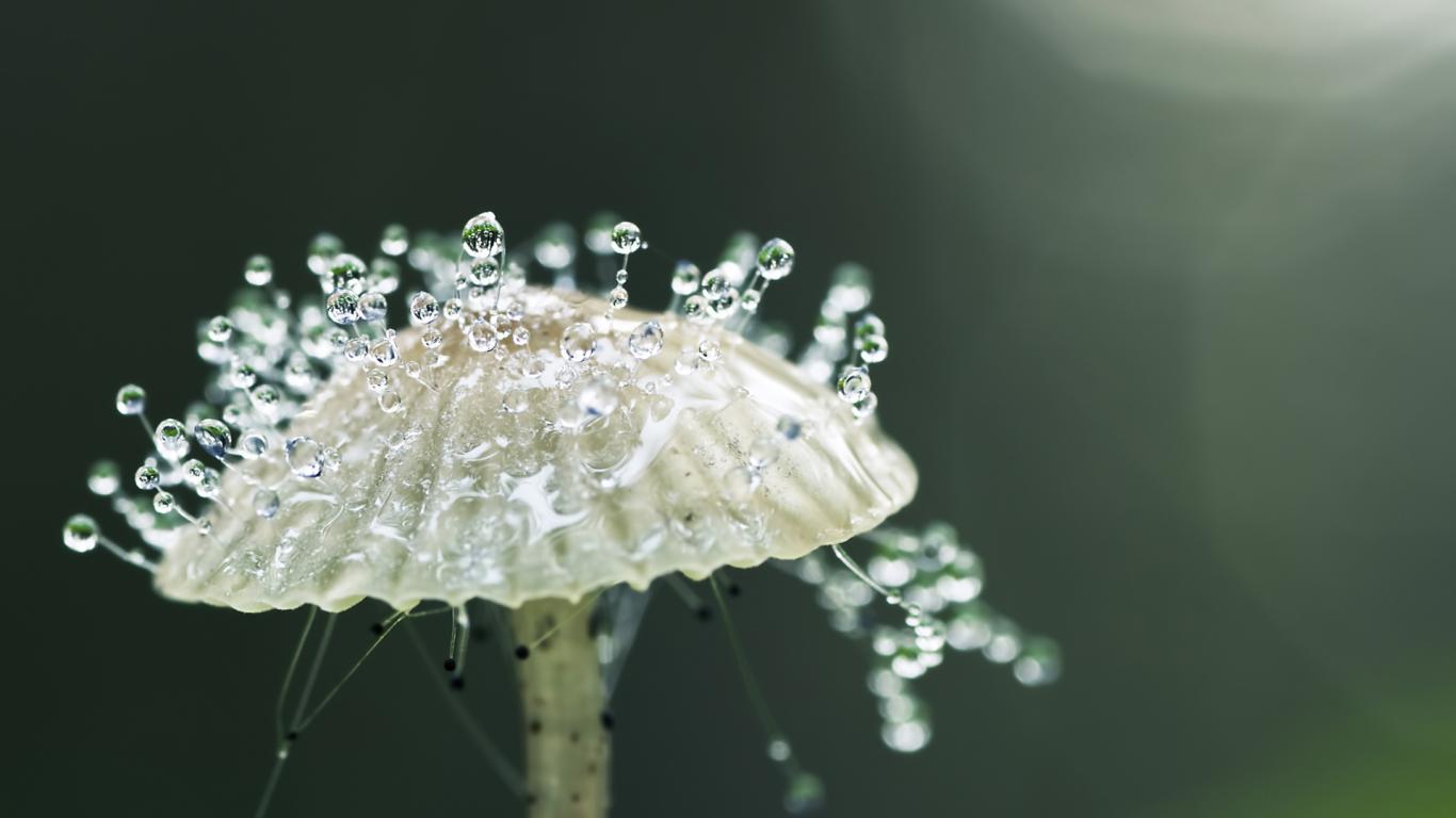 Wallpaper Dew drops on mushroom