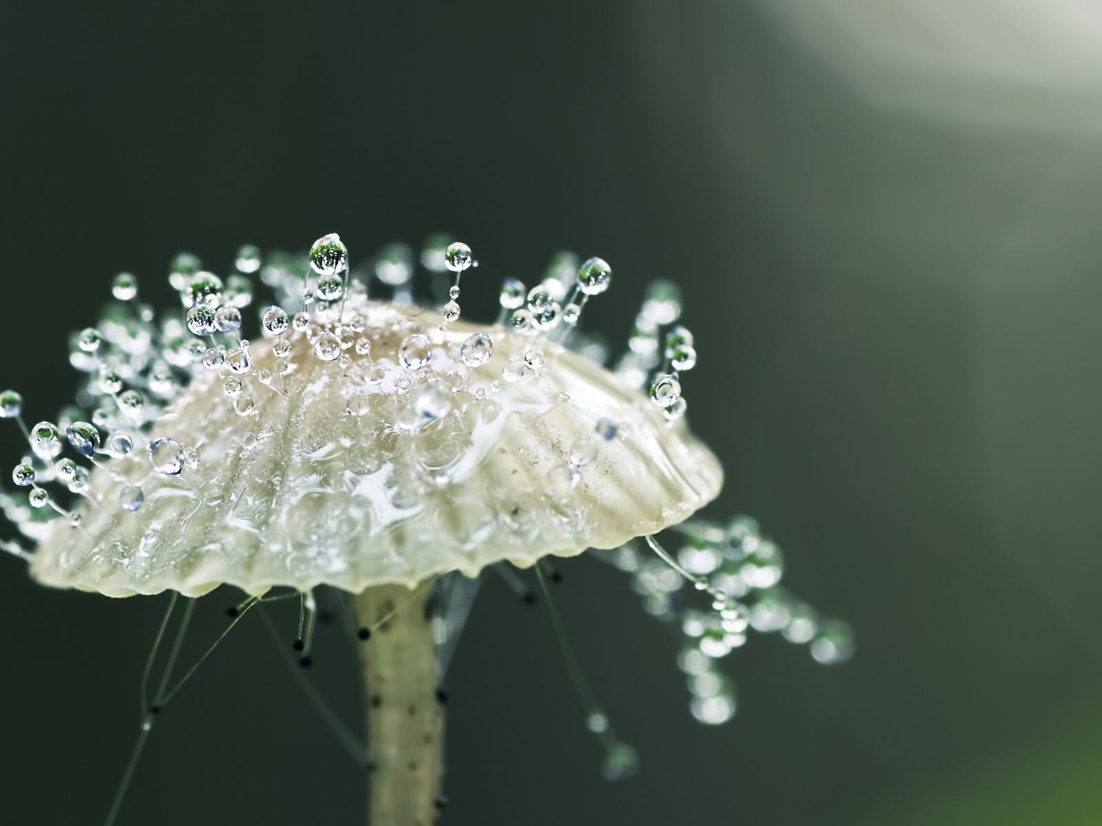 Wallpaper Dew drops on mushroom