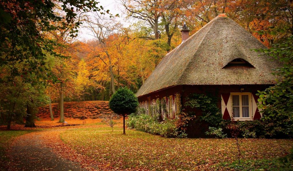 Wallpaper Secluded cabin in most of the autumn forest