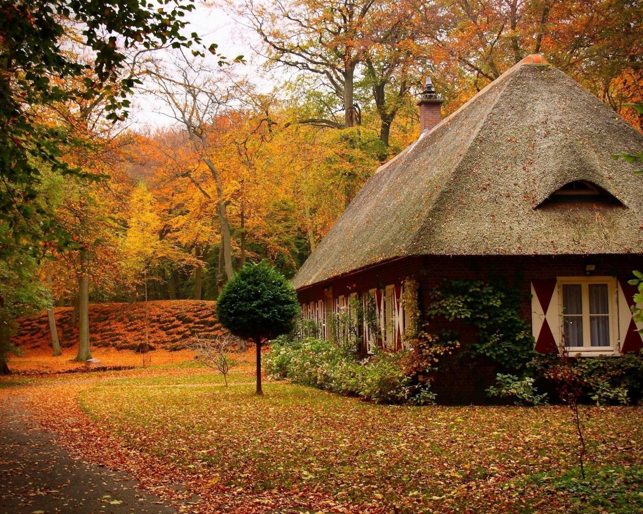 Wallpaper Secluded cabin in most of the autumn forest