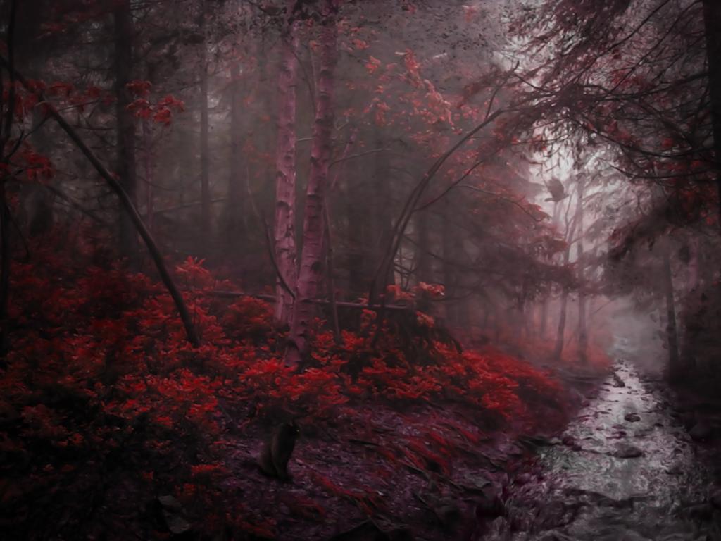 Wallpaper River in the forest often dark red