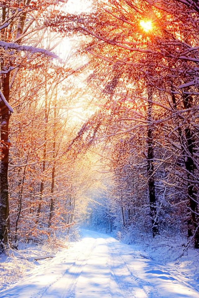 Wallpaper Winter sun illuminates the snow-covered branch in the forest