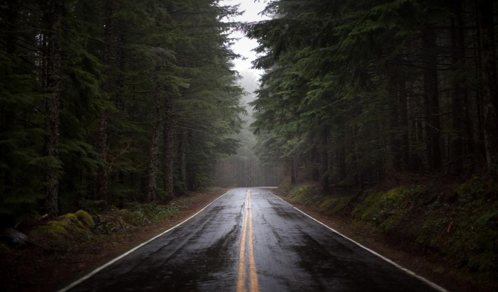 Wallpaper Wet road after rain in the forest