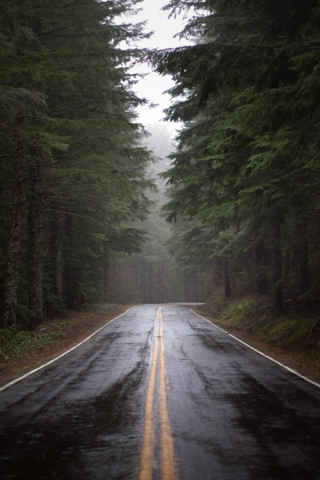 Wallpaper Wet road after rain in the forest