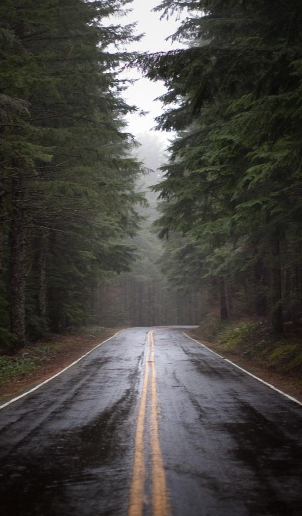 Wallpaper Wet road after rain in the forest