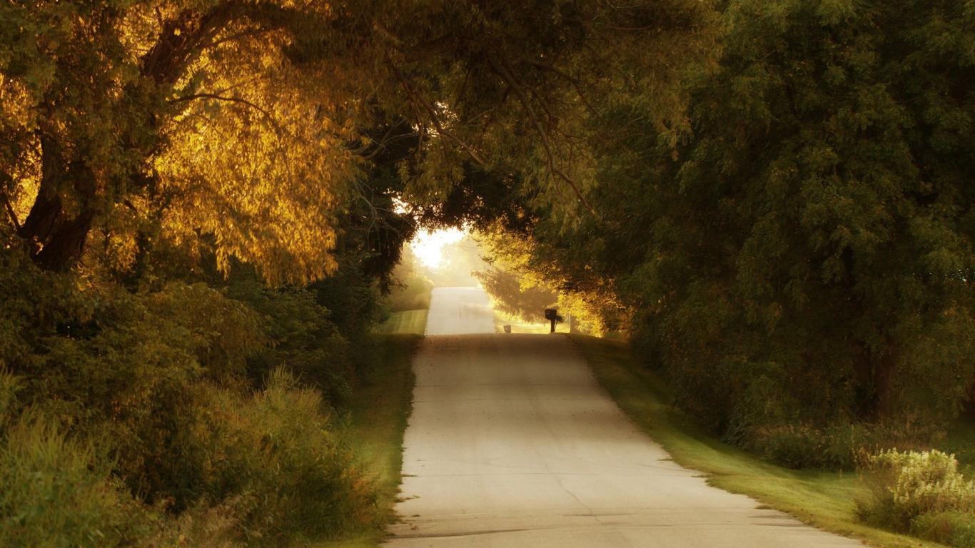 Wallpaper Rough road through the trees