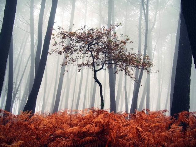 Wallpaper Small tree ferns among dry