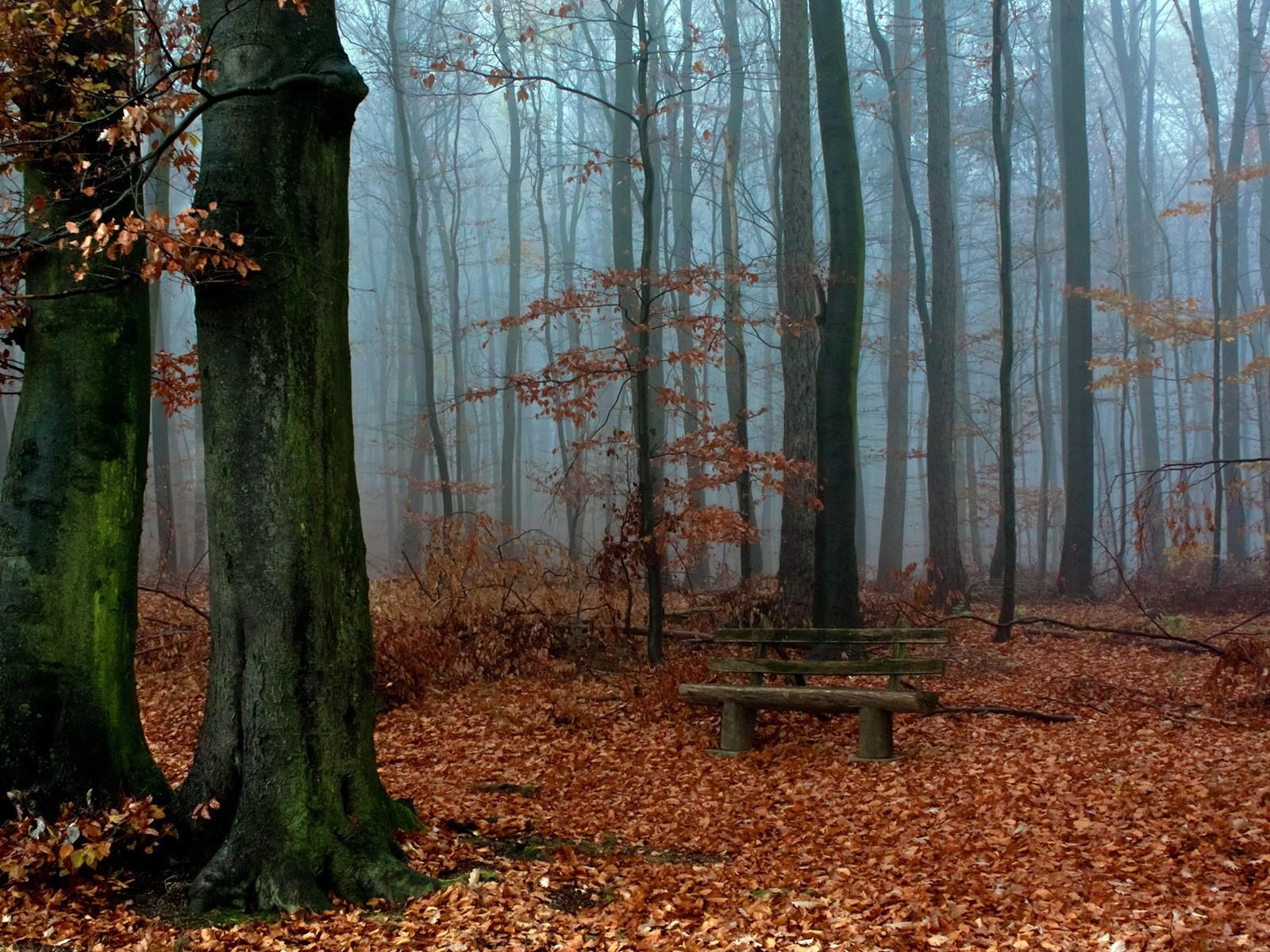 Wallpaper Wooden bench in the middle of autumn forest
