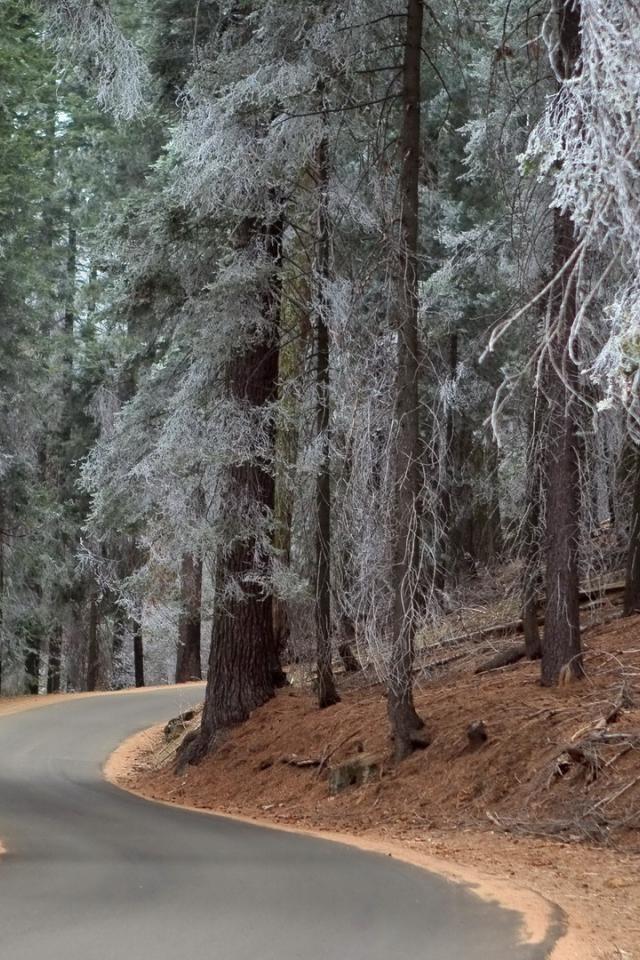 Wallpaper Morning frost on the mighty trees in the forest