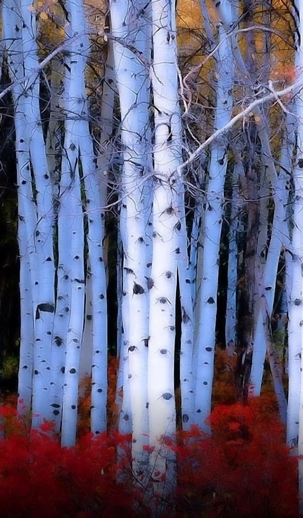 Wallpaper Red bushes among birches