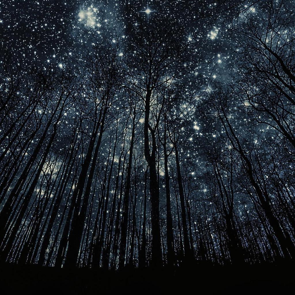 Wallpaper Trees without leaves on a background of stars