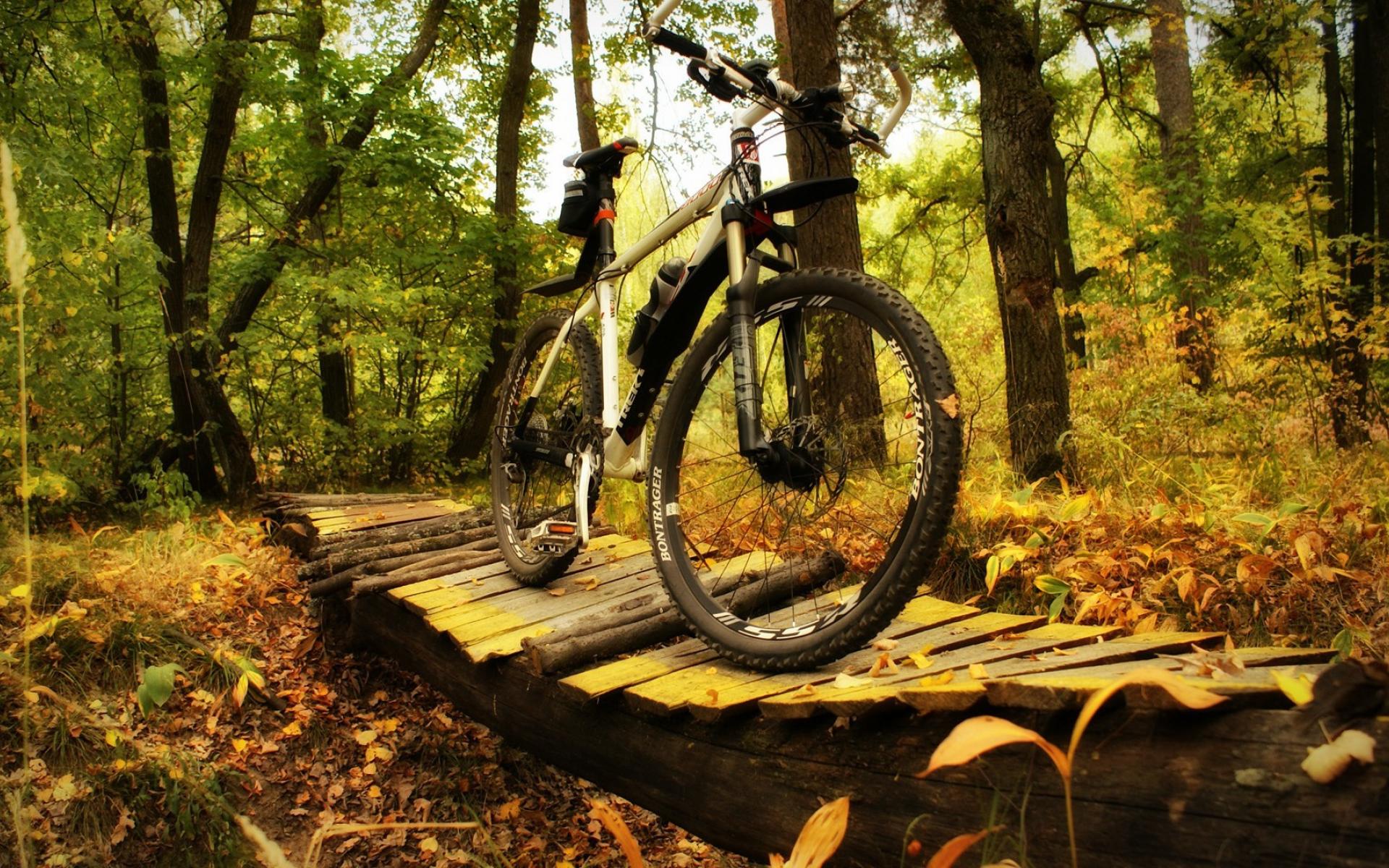 Wallpaper Walking in the woods bike