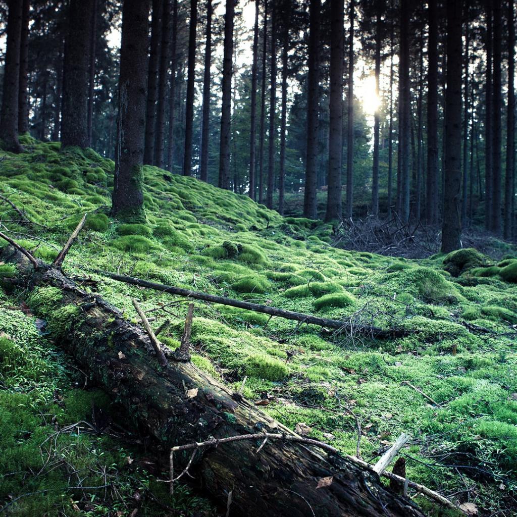 Wallpaper The trunk of a fallen tree on the moss in the forest