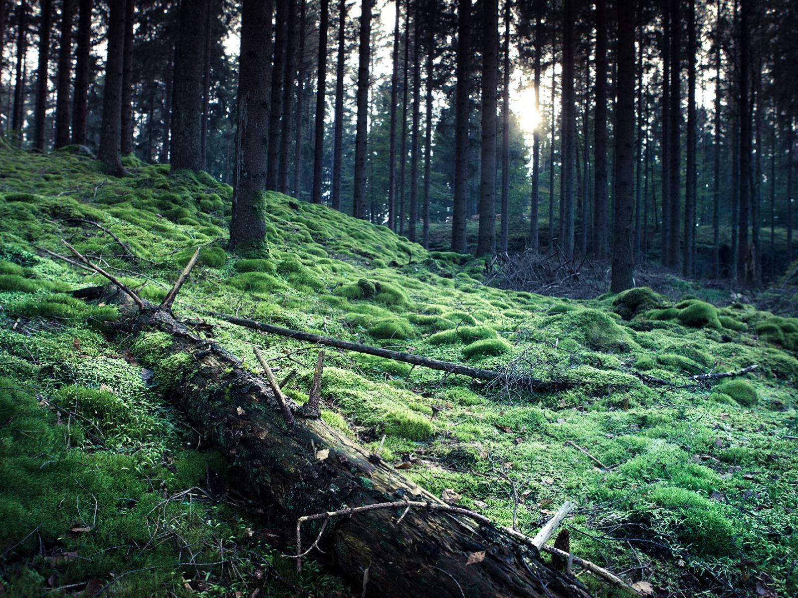 Wallpaper The trunk of a fallen tree on the moss in the forest