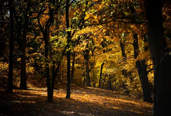 Wallpaper Strewn with fallen leaves path in the woods