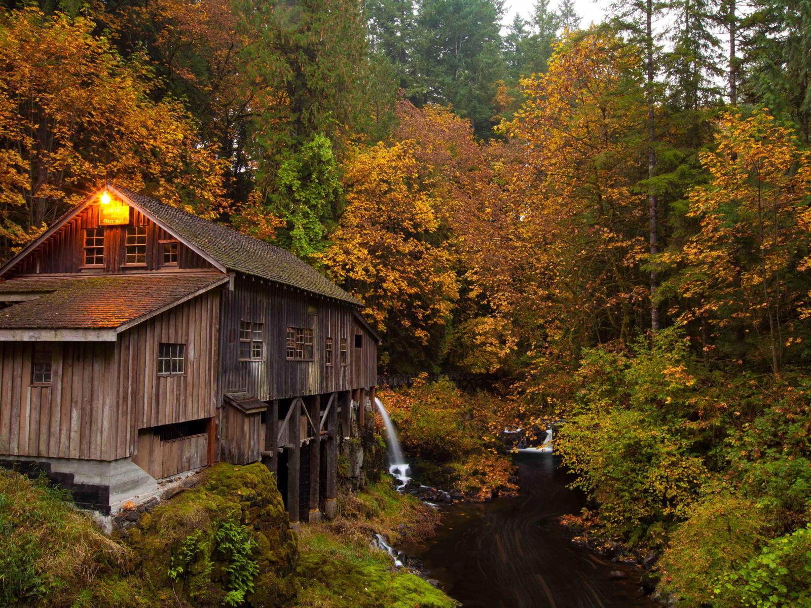 Wallpaper Wooden house in the woods above the rivulet
