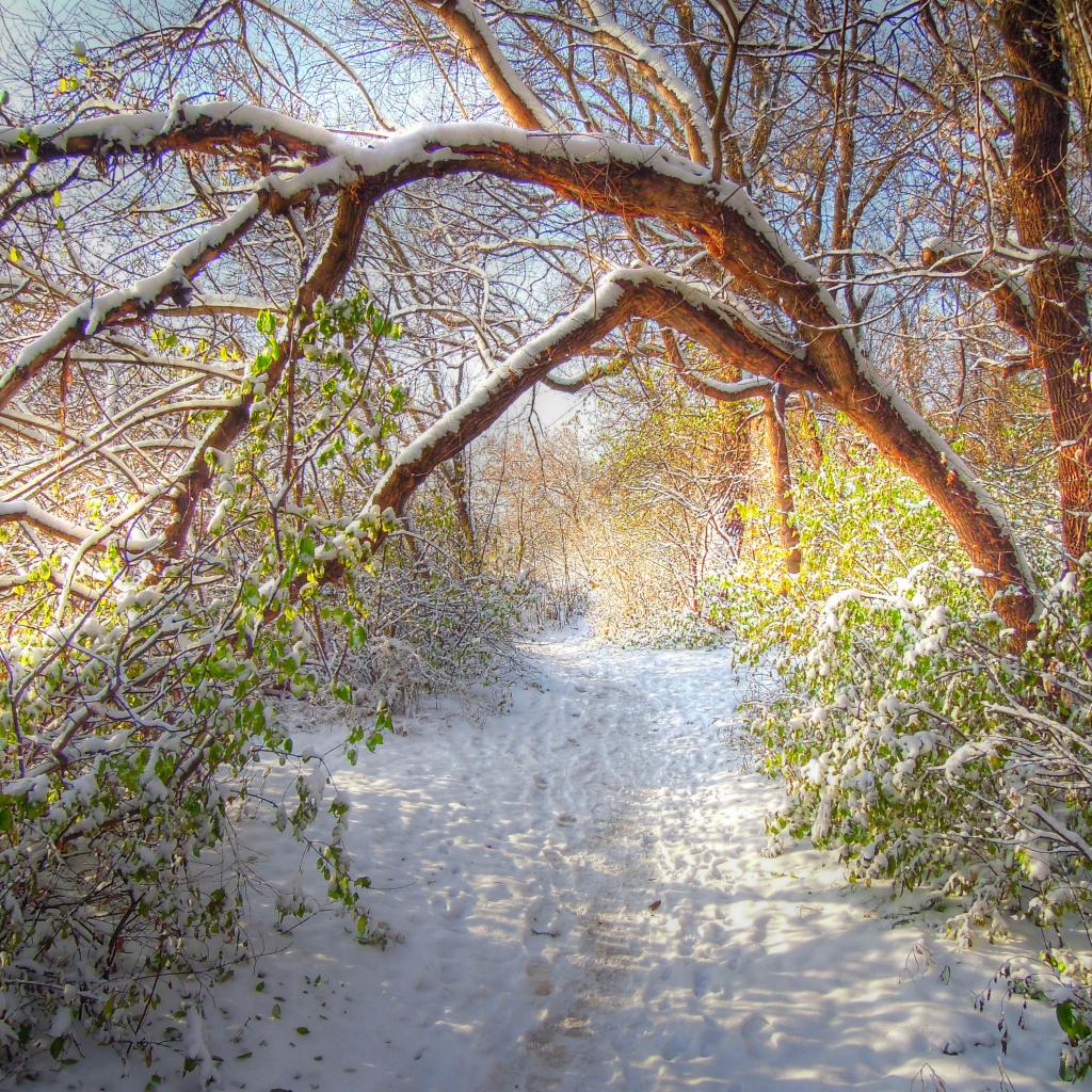 Wallpaper Forest green leaves under the snow