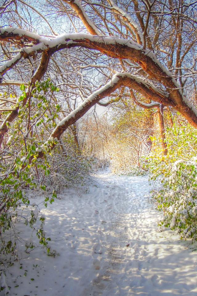 Wallpaper Forest green leaves under the snow
