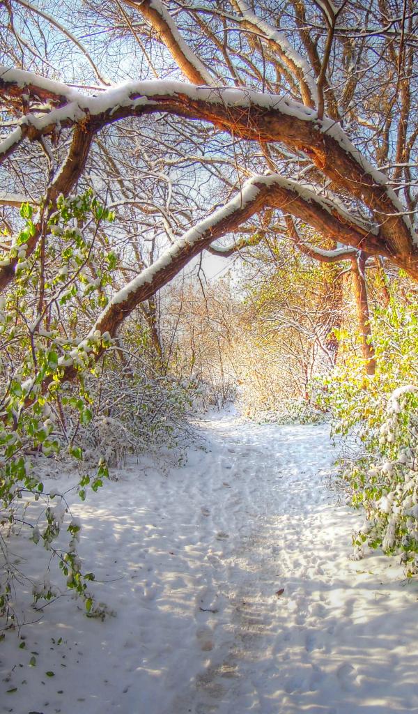 Wallpaper Forest green leaves under the snow