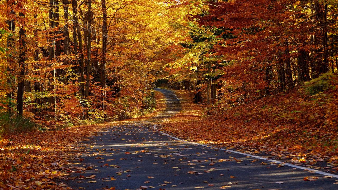 Wallpaper Road in autumn forest