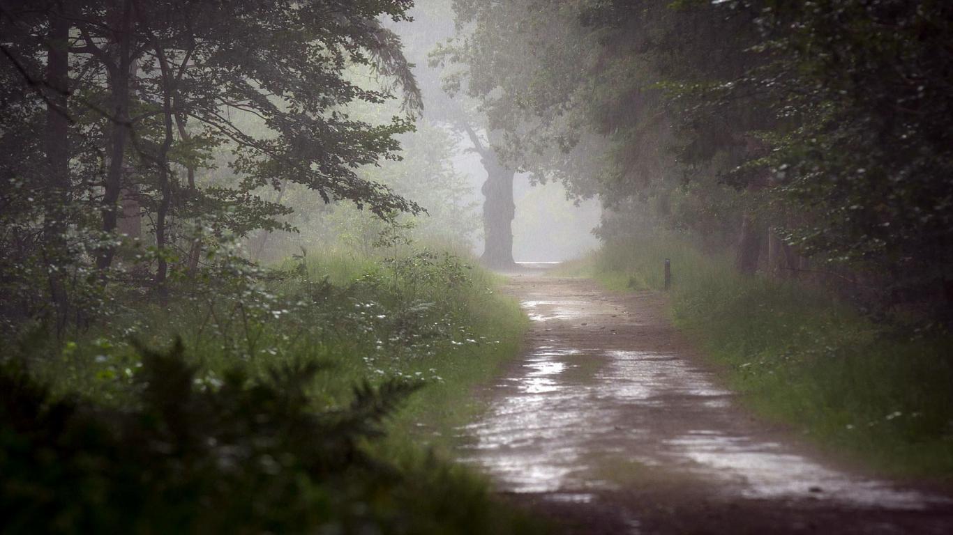 Wallpaper Wet road in a forest