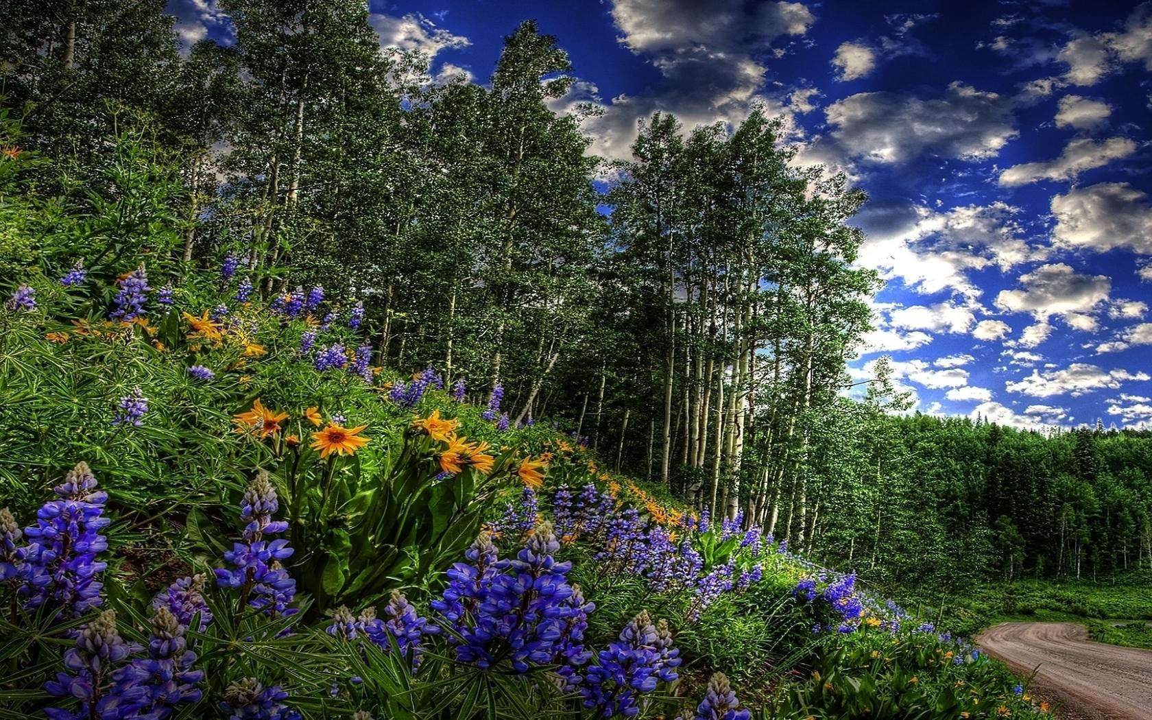 Wallpaper Flowers near the road