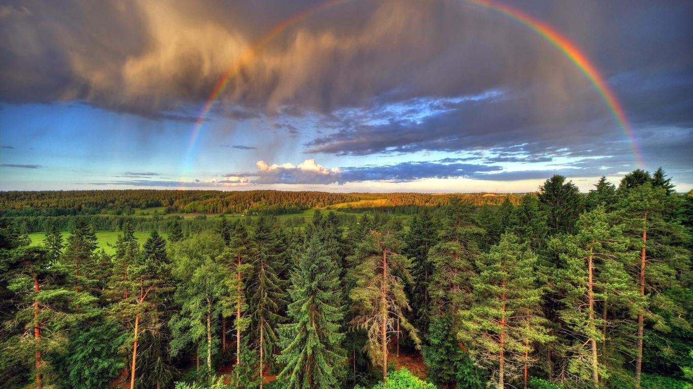 Wallpaper Rainbow over the forest
