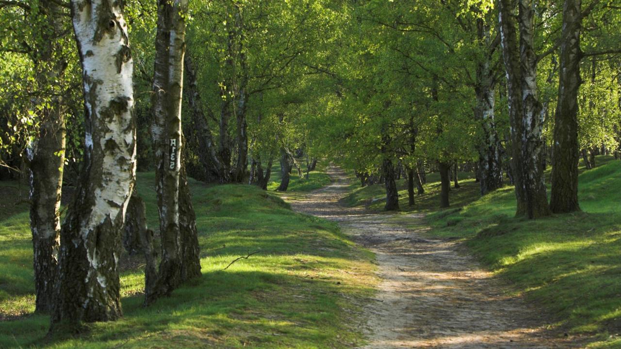 Wallpaper The road in the birch forest