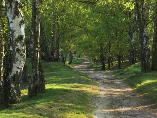 Wallpaper The road in the birch forest