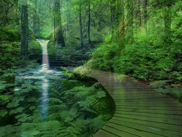 Wallpaper Forest landscape with a waterfall