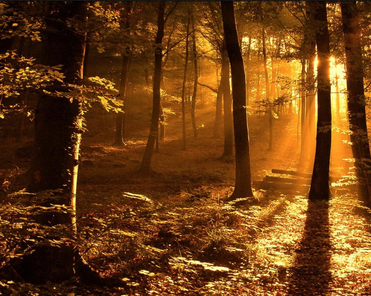 Wallpaper Sun rays in the forest