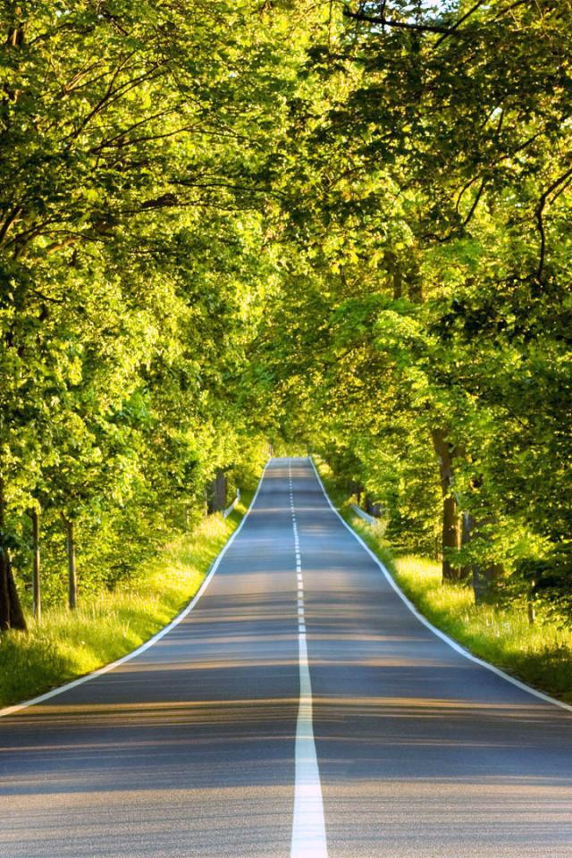Wallpaper A good road through the green forest