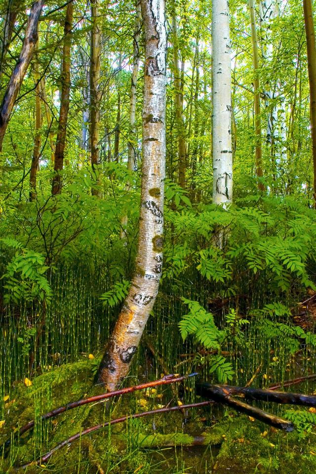 Wallpaper Birch forest on the bog
