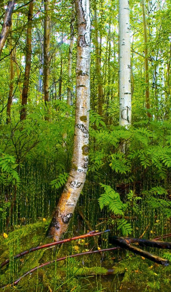 Wallpaper Birch forest on the bog