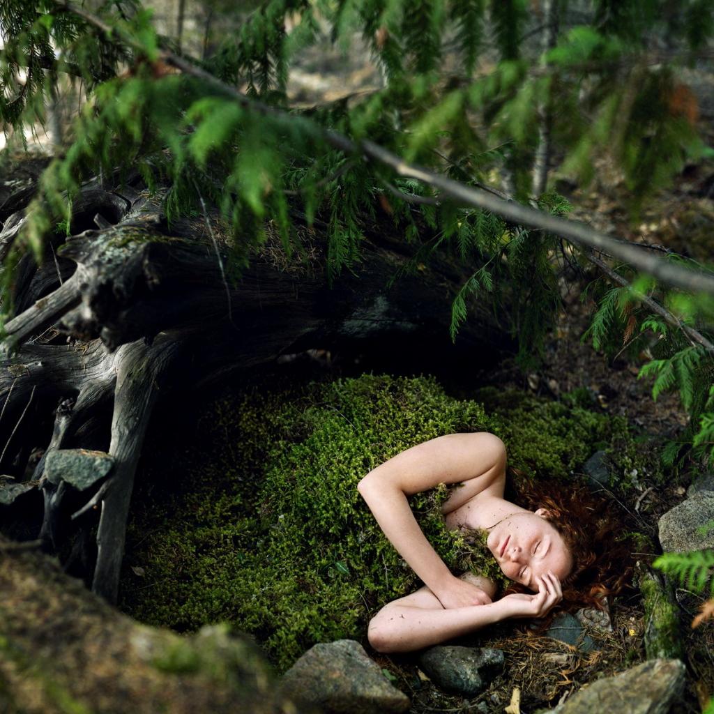 Wallpaper Girl sleeping in moss