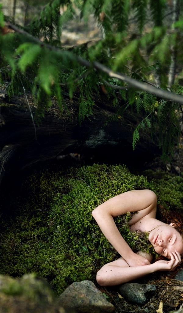 Wallpaper Girl sleeping in moss