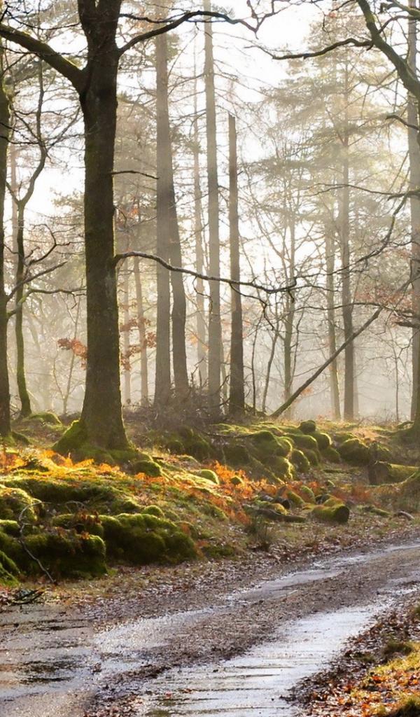 Wallpaper Road in the forest overgrown with moss