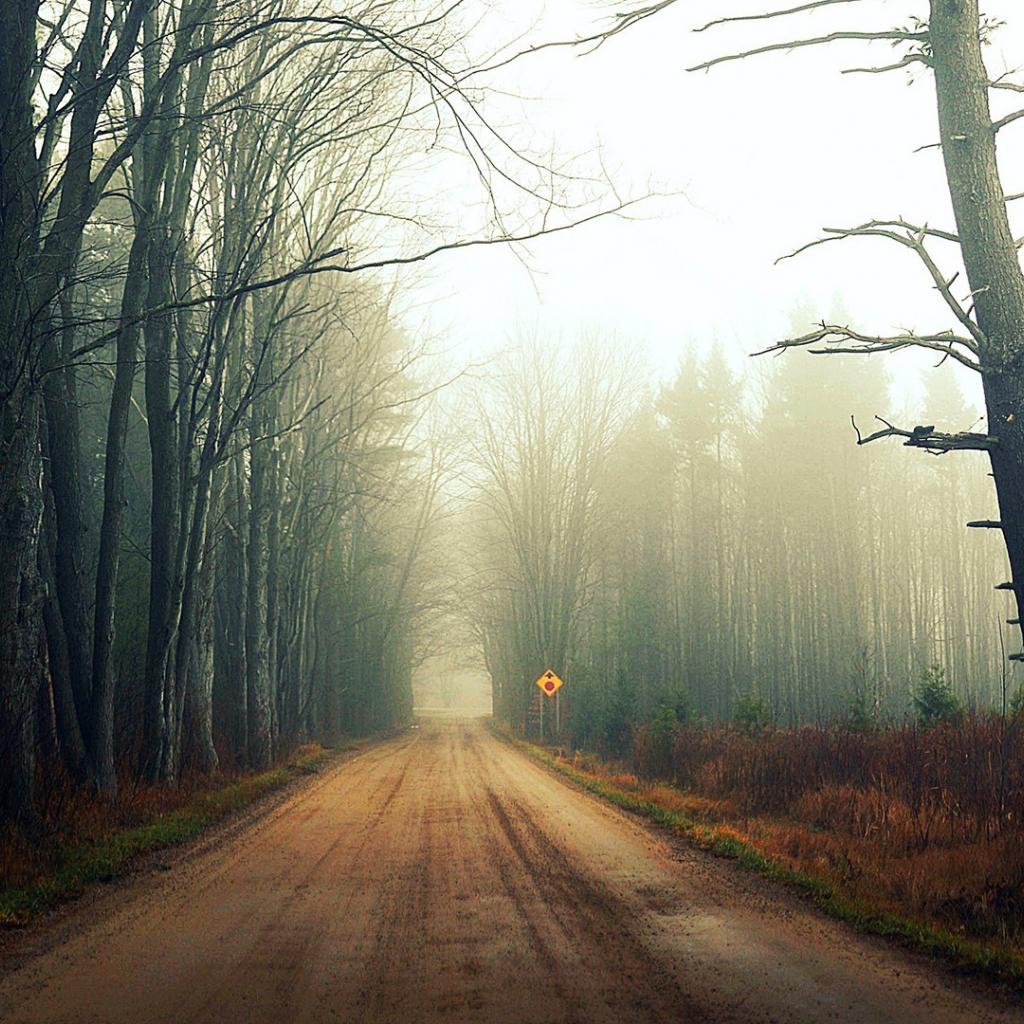 Wallpaper Mist on a forest road