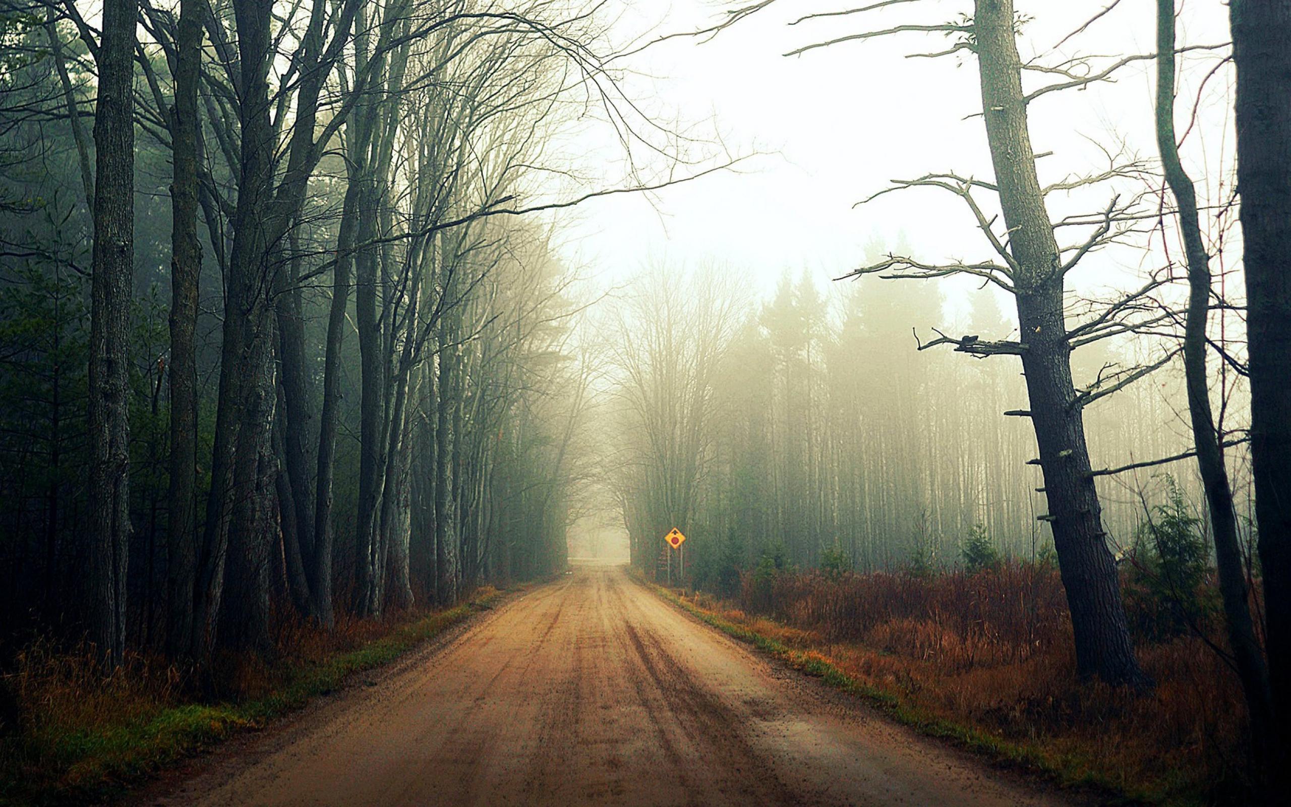 Wallpaper Mist on a forest road