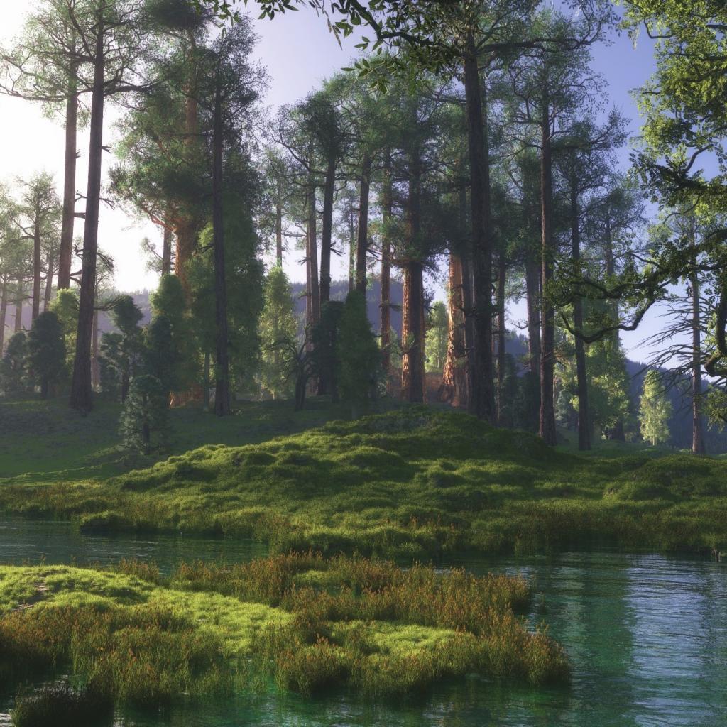 Wallpaper Trees, Green grass, Water, moss