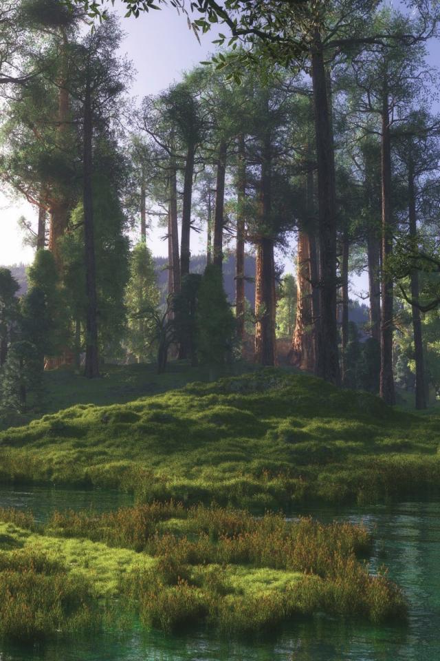 Wallpaper Trees, Green grass, Water, moss