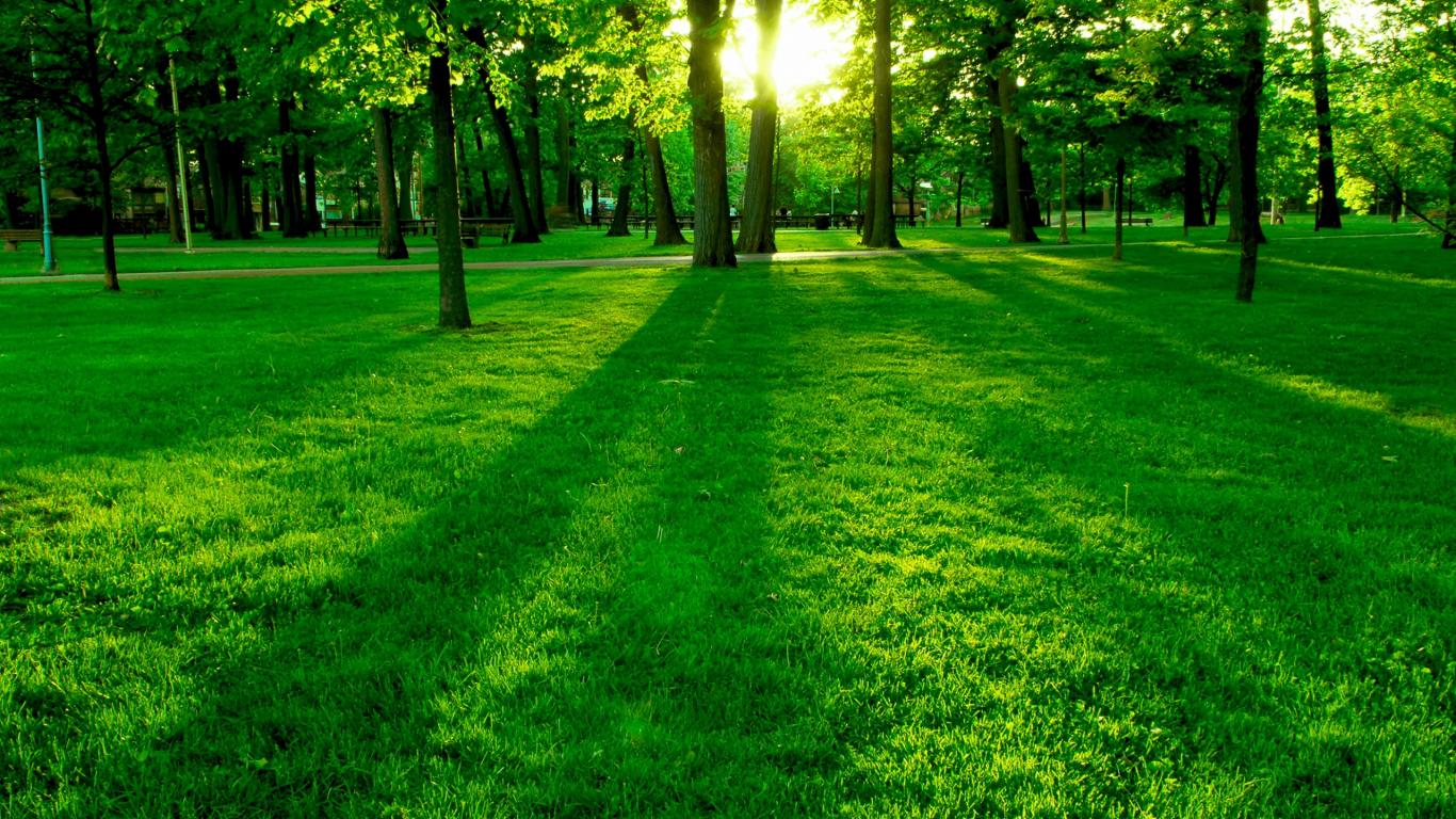 Wallpaper Green grass, Rays of the sun, Foliage