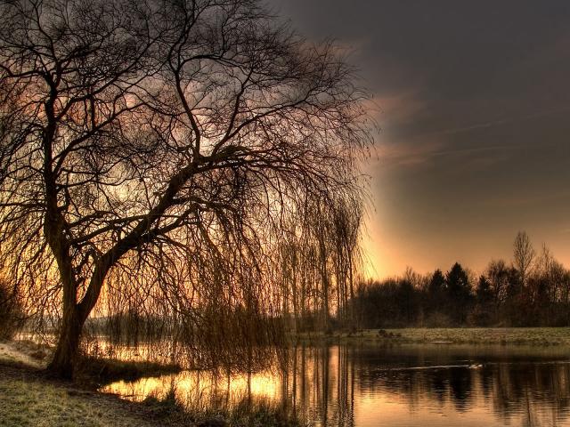 Wallpaper Autumn tree by a river