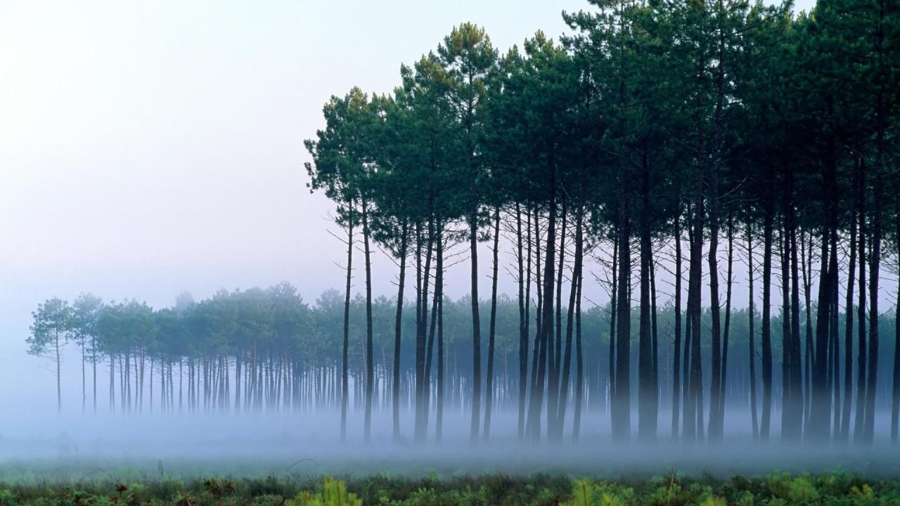 Wallpaper Pines among a fog