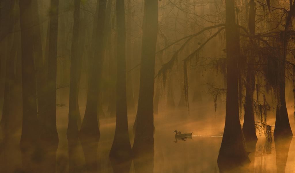 Wallpaper Fog in the flooded forest