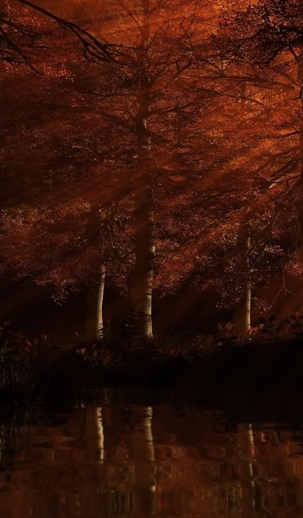 Wallpaper Red forest at sunset