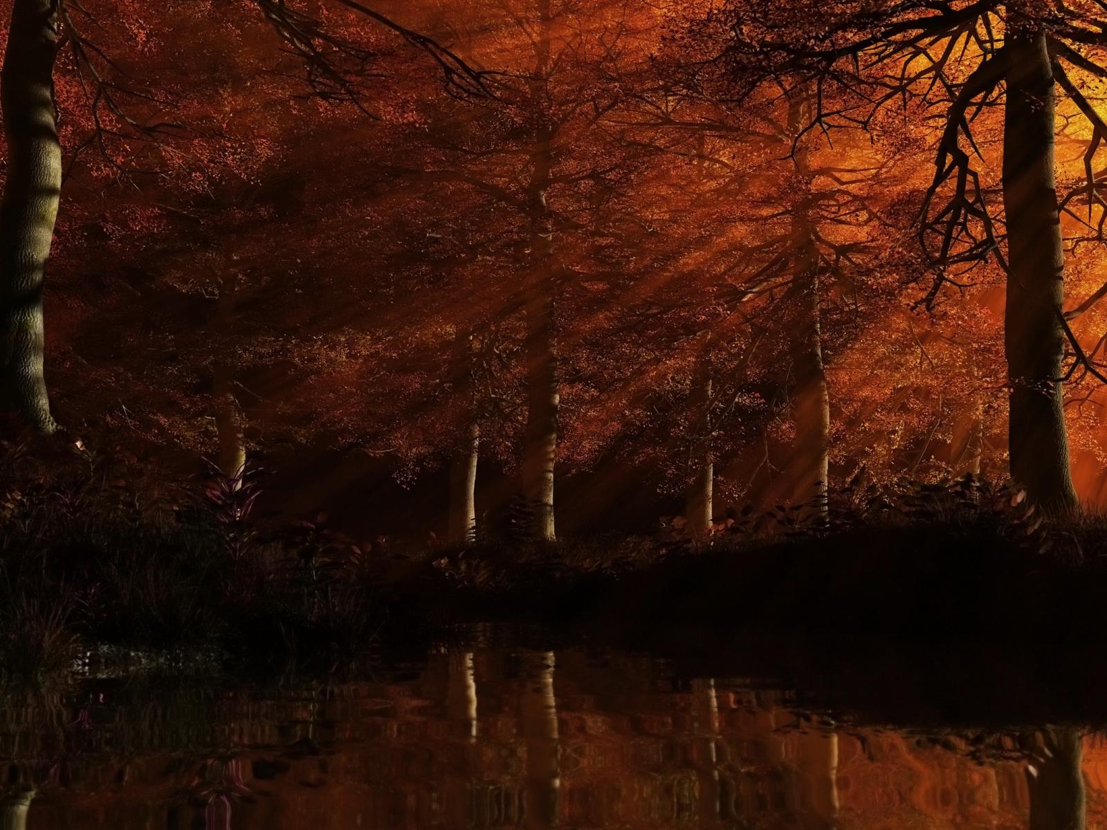 Wallpaper Red forest at sunset