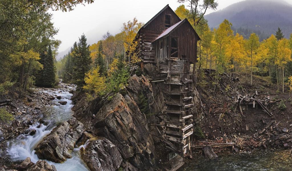 Wallpaper Little House on the banks of the River Forest