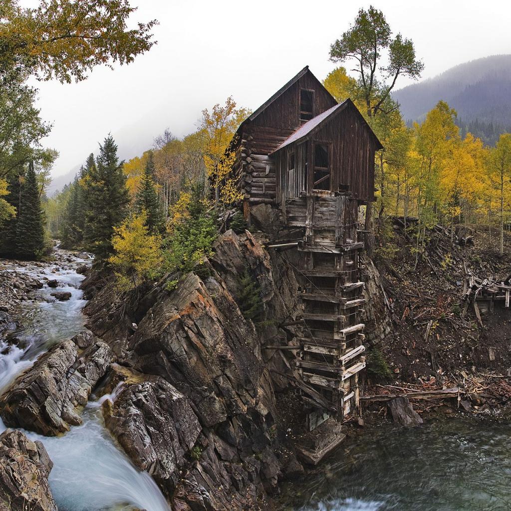 Wallpaper Little House on the banks of the River Forest