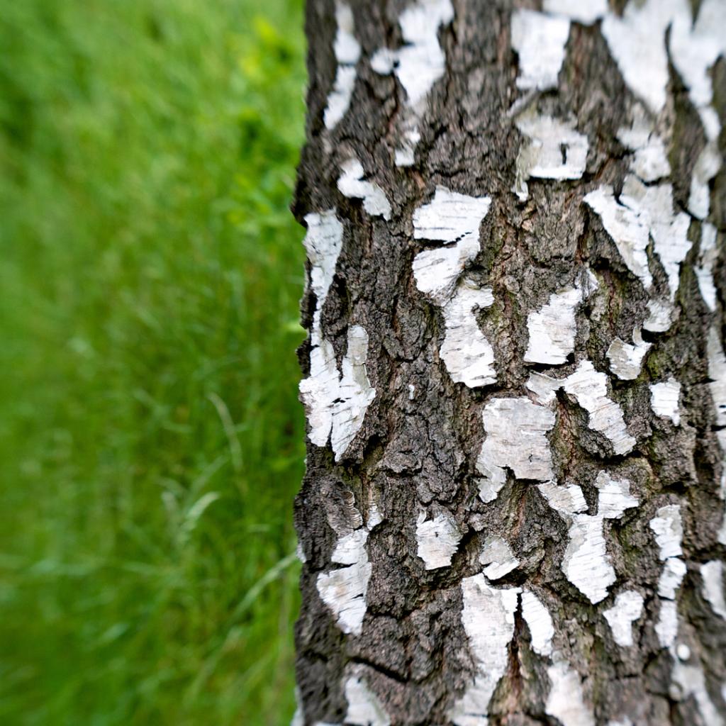 Wallpaper Trunk of a birch on a background of grass